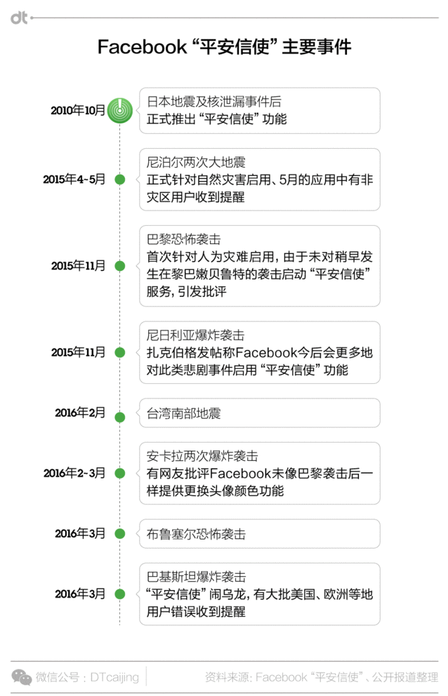(圖片來源:Facebook平安信使頁面) “平安信使”已經(jīng)推出了若干次盡管“平安信使”從推出到現(xiàn)在發(fā)生了一些烏龍,還由于這個功能涉及到定位追蹤和個人隱私的保護(hù),也引發(fā)多次爭議。 不外這項(xiàng)服務(wù)的推出仍舊受到了良多歡迎,并且為實(shí)際救援提供了作用。 Facebook是第一個在大型災(zāi)害事故上系統(tǒng)推出報平安服務(wù)的社交媒體。災(zāi)害事件發(fā)生的時候,通信常常不暢,受影響地區(qū)的用戶會接收到大量的和災(zāi)害相關(guān)的信息以及親朋摯友的關(guān)心,傳統(tǒng)的通信方式效率低下,而龐大的社交網(wǎng)絡(luò)則是提供這一公共服務(wù)的最佳平臺。同時,你也可以看到自己摯友的報平安狀態(tài),以確定他們所處的情況。 這一功能最初是受日本地震及核泄漏事件啟發(fā),起初只是針對天然劫難。而去年巴黎恐怖襲擊后,F(xiàn)acebook首次針對人為災(zāi)害啟用平安信使,據(jù)Facebook自己公然的數(shù)據(jù),410萬用戶在巴黎襲擊后24小時內(nèi)匯報了平安,占了巴黎總?cè)丝诘慕种弧_@些報平安的帖子經(jīng)由大量傳播,終極看過報平安狀態(tài)的用戶數(shù)達(dá)到3.6億之多。