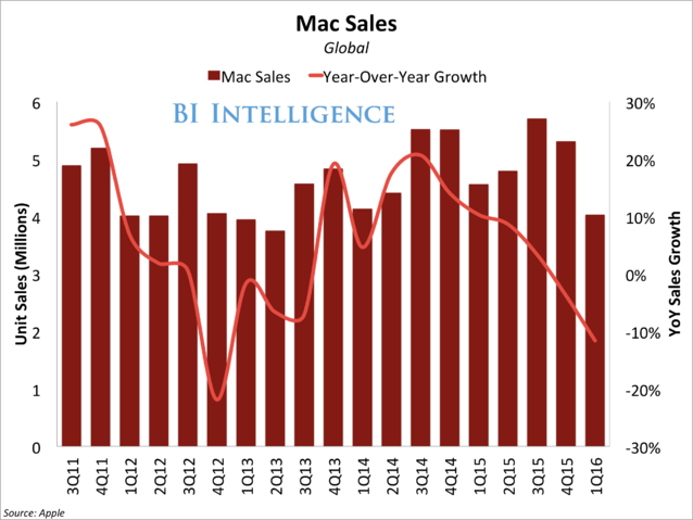 在此也許有人稱,微軟Surface Pro銷售強(qiáng)勁,完全可以在未來(lái)替換和引領(lǐng)平板電腦工業(yè)的增長(zhǎng)。不外從微軟在平板電腦占據(jù)的市場(chǎng)份額看,其與替換和引領(lǐng)平板電腦市場(chǎng)仍存有相稱的差距,至于其他的平板電腦廠商,與在智能手機(jī)工業(yè)中一樣,依然是靠相對(duì)于iPad更低的價(jià)格在維持出貨量,即便如斯,也未能阻止整體平板電腦市場(chǎng)的下滑。由此來(lái)看,平板電腦的未來(lái)仍是寄但愿于蘋果,即蘋果還是平板電腦工業(yè)的晴雨表,但從過(guò)往季度iPad銷量和營(yíng)收不斷下滑看,在大屏智能手機(jī)和PC/平板二合一設(shè)備(例如筆記本)的雙重?cái)D壓下,該工業(yè)的遠(yuǎn)景甚是暗淡,而蘋果至今仍未為平板電腦工業(yè)找到新的增長(zhǎng)點(diǎn),這不得不提醒依然在平板電腦工業(yè)廝殺和還要預(yù)備進(jìn)入的廠商是理性看待這個(gè)工業(yè)和市場(chǎng)的時(shí)候了。 最后是傳統(tǒng)的PC工業(yè)。據(jù)蘋果本財(cái)季財(cái)報(bào)顯示,Mac營(yíng)收同比下滑9%;銷量同比下滑24%。坦誠(chéng)地講,我們沒(méi)有料到Mac的銷量會(huì)下滑得如斯嚴(yán)峻,嚴(yán)峻到甚至超過(guò)了同季PC市場(chǎng)的整體下滑(Gartner和IDC統(tǒng)計(jì)第一季度全球PC出貨量同比下滑分別為9.6%和11.5%),這里我們需要增補(bǔ)的是,在Gartner和IDC對(duì)于今年第一季度全球PC市場(chǎng)出貨量的統(tǒng)計(jì)中,蘋果Mac的出貨量分別是461.1萬(wàn)臺(tái)和446.6萬(wàn)臺(tái)(同比增長(zhǎng)1%和下滑2.1%),均高出蘋果財(cái)報(bào)中對(duì)于當(dāng)季Mac出貨量403萬(wàn)臺(tái)的統(tǒng)計(jì),原因何在?