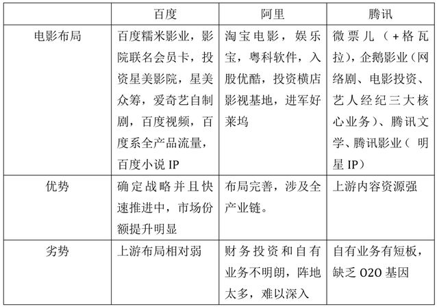 百度:快速進擊拆開來說,百度今年對片子行業(yè)的投入力度是BAT中最大的,這與百度200億轉型O2O的團體戰(zhàn)略息息相關。 2015年,百度糯米影業(yè)幾件重要事情是,投資星美院線,推出影院聯(lián)名會員卡,上線超級影院商城,與星美合作眾籌新影院,推出“實時票房、用戶畫像、搜索指數(shù)、口碑輿情”大數(shù)據(jù)產品,除了百度糯米產品支持之外,百度手機搜索、百度輿圖四周都對片子流量完全放開,另外結合鼎力度的院線線下推廣。 這些聽起來簡樸,實在背后是百度內部資源的大整合,包括流量、技術,以及從戰(zhàn)略到執(zhí)行的快速推動力。 利用從淺到深的原理,百度糯米影業(yè)今年以會員+帶動銷售,弱化團購,而是用虛擬會員卡的方式跟二十來個品牌院線合作,籠蓋了超過80%的票房來源地。用大數(shù)據(jù)產品以及高價值流量,來取得跟院線的深度合作,用市場推廣進行線下YIN流。 百度糯米影業(yè)正在從下往上入侵片子行業(yè)工業(yè)鏈,從銷售切入去深入院線,影響發(fā)行,用優(yōu)質流量為院線以及單獨的片子提供宣發(fā)服務,下一步應該就是制片,以及再上游的IP培育了。 百度糯米影業(yè)現(xiàn)在要不要做影片的制作發(fā)行暫時不可知,不外愛奇藝自制劇能力不錯。而百度小說也可以成為IP起源地。跟著在片子行業(yè)的深入滲透滲出,這些提上日程也只是遲早的事情。 總體來說,百度糯米影業(yè)在片子行業(yè)也屬于后來者,但最大的上風是百度全力以赴快速進擊,這是百度與阿里、騰訊最不一樣的地方。也恰是如斯,百度在這場爭斗中,應該有更多勝算。 阿里:買買買阿里在片子行業(yè)中的布局用三個字可以形容“買買買”。從博納到粵科,從橫店到好萊塢,都留下阿里金主的身影。 博納是籠蓋片子制作、發(fā)行、廣告、藝人經紀多方位一體的全工業(yè)鏈公司,而粵科軟件公司,是院線系統(tǒng)“火鳳凰”制作商。之前在線選座的介入者,以能與火鳳凰直接交換數(shù)據(jù)為榮。否則就只能從第三方接入“二手數(shù)據(jù)”。 阿里巴巴與浙江橫店成立影視公司,要主攻未來的高科技大片兒。另外還公布要進軍好萊塢,把國際上的好片子引入中國。在自有產品支持上,除了淘寶片子之外,還有理財產品娛樂寶。 這種大開大合的布局,真是讓人費解。這意味著,要么很厲害,像圍棋巨匠,看似閑子,最后卻連成殺局。要么只是在做財務投資,只是看起來很戰(zhàn)略而已,實在未必須要買通。 恕作者駑鈍,比較偏向后者,究竟阿里巴巴也不是萬能的,來往、口碑都沒太做好,淘寶片子砸下巨額補貼,今年進展也一般般。另外在阿里整體布局中,本地糊口一直是高舉輕打,不落實處,不知片子會不會意外? 騰訊:松耦合的方陣騰訊系孵化了一個微票兒,把格瓦拉合并了。這種高維攻擊低維的方式,應該頗讓創(chuàng)業(yè)者心寒吧。 騰訊之強,微信之勢已經不需要贅述。但是,騰訊系在片子行業(yè)的布局是強者松耦合的狀態(tài)。旗下有騰訊影業(yè)和企鵝影業(yè),內部有整合了格瓦拉的微票兒團隊。 騰訊影業(yè)側重于發(fā)掘與聯(lián)動內外部在文學、動漫、游戲等多個泛娛樂領域的明星IP,核心是打造更廣泛影響力與更多貿易價值的明星IP,而企業(yè)影業(yè)將在網(wǎng)絡劇、片子投資、藝人經紀三大核心業(yè)務上發(fā)力。 騰訊影業(yè)、企鵝影業(yè)乃至合并了格瓦拉之后的微票兒,單獨拎出來都還尚可。但對于片子行業(yè)的全整合來說,彼此之間的間隙大了點兒。 好比,影業(yè)培育的IP到片子制作,本身還有間隔,而有了片子之后,才能到發(fā)行、銷售推廣。另外,即使微信擁有龐大的流量,但是微票兒在銷售的同時,也不能給到某一個單獨的影片以推廣資源。 所以這個耦合的方陣本身也存在良多無法銜接的區(qū)間,當然,跟著時間推移,這些空缺都可以被填補,但在能不能做和想不想做,以及做不做得成之間,又會多出良多變數(shù)。 所以說,2016年互聯(lián)網(wǎng)入侵片子行業(yè)很可能泛起垂直產品被生態(tài)打壓的變局。幾年前,格瓦拉曾經占據(jù)華東區(qū)在線選座超過70%的份額,但是卻被團購起家的貓眼片子截胡,2016年,垂直深入的貓眼則可能被BAT壓制,百度生態(tài)支持下的百度糯米片子,是最有望沖擊市場領先地位的。阿里和騰訊要鋪的面兒都太大了,收成期還得靠后。 年末將至,各家賀歲檔、春節(jié)檔從宣傳到銷售,又在爭得人仰馬翻。再過2個月,就會有新的銷售數(shù)據(jù)和排名了。 |