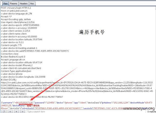 (假如有點(diǎn)開(kāi)圖的差友,會(huì)發(fā)現(xiàn),賬號(hào)名字都叫 “ 君差評(píng) ”) 并且,Uber 居然也沒(méi)有異地登陸的提醒。。 然后再配上剛剛說(shuō)的漏洞,一般黑客,都能神不知鬼不覺(jué)的盜號(hào)了。。 盜號(hào)過(guò)程真的還算不難。。。 首先,設(shè)置一個(gè)固定的 password(密碼) 例如:“ 123456 ”,然后再對(duì)手機(jī)號(hào)碼進(jìn)行一一遍歷。。就是一個(gè)一個(gè)用這個(gè)密碼去嘗嘗嘗。。。 爆破 + 遍歷 + 撞庫(kù)