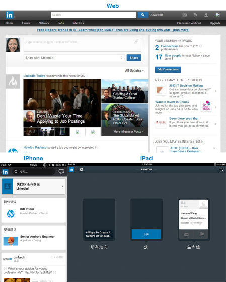 圖為 LinkedIn 的 Web、iPhone 和 iPad 版。 一、如何來規(guī)劃不同產(chǎn)品上的功能 在PC端有超大的屏幕,有鼠標和鍵盤靈活的交互形式,其功能往往比較復雜,用戶能通過鼠標指點的形式快速地完成各種任務(wù)。然而在PAD與手機端,屏幕能呈現(xiàn)的信息有限,交互形式也是精度相對較差的手勢形式,所有的這些都決定了在移動真?zhèn)功能應(yīng)該做減法。 對于新產(chǎn)品來說,移動優(yōu)先或者是移動平等重要的產(chǎn)品規(guī)劃方式是及其重要的,獨立思索在移動端能呈現(xiàn)的功能和內(nèi)容,讓設(shè)計師更清楚地看到產(chǎn)品的核心功能、內(nèi)容,有利于設(shè)計師掌握產(chǎn)品的方向。甚至可以考慮將移動端優(yōu)先于PC端,PC的功能在移動的功能基礎(chǔ)上去架構(gòu),它也不會脫離產(chǎn)品的核心價值。 PC 固有的特點在進行復雜功能操縱時會更有上風。那是不是復雜功能就直接轉(zhuǎn)移到 PC 上,而在手機上只展現(xiàn)簡樸功能呢?我覺得未必,要看產(chǎn)品的目標用戶和產(chǎn)品特點,有些產(chǎn)品用戶只更傾向于移動端使用,甚至還有些使用本產(chǎn)品的用戶都沒有 PC。因此,在考慮用戶特性的基礎(chǔ)上,優(yōu)先規(guī)劃移動真?zhèn)產(chǎn)品信息架構(gòu)。假如有些功能覺得轉(zhuǎn)移到 PC 上衡量過沒有題目,那我覺得可以進行轉(zhuǎn)移,在移動端凸起最核心的功能給用戶,并保持界面簡潔。 對于老產(chǎn)品,像淘寶網(wǎng)這樣的產(chǎn)品,其 PC 端本身及其復雜。那在產(chǎn)品設(shè)計時,更多地思索在移動端用戶的使用情景和核心功能,先去知足最核心的功能,知足有手機特色和移動情景的功能。 二、設(shè)計上的差異在哪兒 當前的設(shè)計手法在各個平臺、各種形態(tài)上都有融合的趨勢,在Web真?zhèn)設(shè)計也越來越客戶端化,很多Web App都讓人很難判定到底是HTML5做的仍是Native的。因此,在設(shè)計手法上的差異會越來越小。 然而,基于 PC、PAD、Phone的設(shè)備特性有較大的差異,PC 的指點操縱與PAD、Phone 的觸摸操縱有很大的不同,觸摸優(yōu)先的設(shè)計原則對移動真?zhèn)設(shè)計有較大的匡助。其次,用戶的設(shè)備的機能和網(wǎng)絡(luò)特征千差萬別,在設(shè)計時需要去思索各自用戶使用的環(huán)境。再次,多設(shè)備用戶,在使用產(chǎn)品時,如何進行設(shè)備間的切換,如何銜接不同設(shè)備的操縱而不被丟棄都是設(shè)計師需要考慮的題目。 對于WAP與Native的設(shè)計,主要關(guān)注瀏覽器的支持特性及Native上能施展的手機、各類傳感器的特性,這需要設(shè)計師拓寬思路去思索,好的設(shè)計能極大地晉升體驗。 三、設(shè)計上的策略有哪些 從PC端到移動真?zhèn)Web設(shè)計時,響應(yīng)式設(shè)計是提得最多的方法。且在很多公司都有良多實踐。在淘寶,梓佑(編者注:淘寶資深 UED 總監(jiān))之前也一直在推動響應(yīng)式的設(shè)計,在一淘網(wǎng)、淘寶搜索等很多產(chǎn)品上都有實踐,總得來說對用戶體驗起到了積極的作用。 然而我們看到的響應(yīng)式做得好的網(wǎng)站往往是結(jié)構(gòu)相對簡樸的博客類、新聞類網(wǎng)站,這些頁面結(jié)構(gòu)簡樸,響應(yīng)規(guī)則輕易定制,前端實現(xiàn)也不復雜。而對于復雜的網(wǎng)頁的響應(yīng)式設(shè)計,則都會碰到不少挑戰(zhàn),淘寶資深設(shè)計師,樂乘,在做玩客項目時,總結(jié)了一套設(shè)計方案,值得參考。但是總的來說,復雜頁面是不是要使用響應(yīng)式還值得探討。 對于PC與移動客戶端(App)的設(shè)計有何差異?成功移動客戶端產(chǎn)品往往是基于用戶任務(wù)與使用情景進行設(shè)計,施展了手機的特性,使原本PC的功能得到更好地彌補與晉升。如大眾點評中的LBS使用戶能快速地發(fā)現(xiàn)四周的店鋪;微博能快速地上傳即時拍攝的照片,能隨時隨地的查詢等。 那WAP與客戶真?zhèn)上有什么側(cè)重呢?從使用情景上來講,這兩者是一致的。主要的側(cè)重有兩點,其一是兩者的流量原來往往不一致,根據(jù)流量來源來區(qū)分用戶的特征,基于用戶特征的不同來使兩者在產(chǎn)品上的不同。其二是WAP上一些限制和上風,WAP上有很多功能還無法實現(xiàn),另外WAP有快速迭代的上風,也可以進行一些項目的試錯等。當然,當前WAP與客戶端也在融合,這也是一個方向,跟著HTML5等技術(shù)的成熟,兩者的融合是早晚的事情。 最后,移動互聯(lián)網(wǎng)的時代已經(jīng)來臨,移動用戶的體量也會越來越超越PC,在進行產(chǎn)品設(shè)計時,思索移動平臺是必定的,如何能進行更好地全平臺設(shè)計,還有待業(yè)內(nèi)人士更多地探討。記得幾年前,我非常信仰移動真?zhèn)產(chǎn)品應(yīng)該是PC的增補,現(xiàn)在看來完全不靠譜。像微信這樣的產(chǎn)品,PC真?zhèn)設(shè)計純粹是移動真?zhèn)增補,更多產(chǎn)品則根本沒有PC真?zhèn)產(chǎn)品。因此,如何能進行全平臺的設(shè)計,也需要根據(jù)各自的產(chǎn)品特征、用戶特征、情景特征來決定,最大地施展產(chǎn)品的核心價值給目標用戶,這就成功了! |