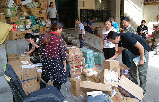 漳扎郵政支局投遞第一批寄達(dá)的救災(zāi)物資。