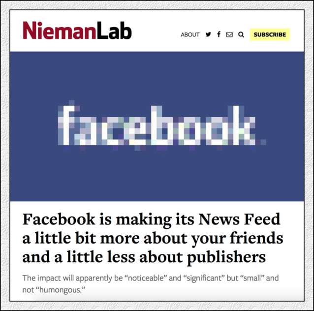 6月底,F(xiàn)acebook又公布調(diào)整算法了,這回調(diào)整,受傷的仍是媒體(Publishers)。幾乎所有的美國媒體這幾天討論的都是Facebook算法,以及自己身上正在流血的傷口?膳碌氖牵襟w們?cè)谶M(jìn)行這次報(bào)道的時(shí)候,洋溢的是某種哀怨,而不是憤怒。他們憤怒,但表現(xiàn)的只是哀怨。與狼共舞,不時(shí)地被狼咬上一口,很正常的。 在2016年5月經(jīng)歷了“Facebook新聞偏見門”、Facebook “蒂爾門”兩次沖擊之后,美國的媒體可能無法想象,這么快又會(huì)面對(duì)一次來自Facebook的新的震撼教育。