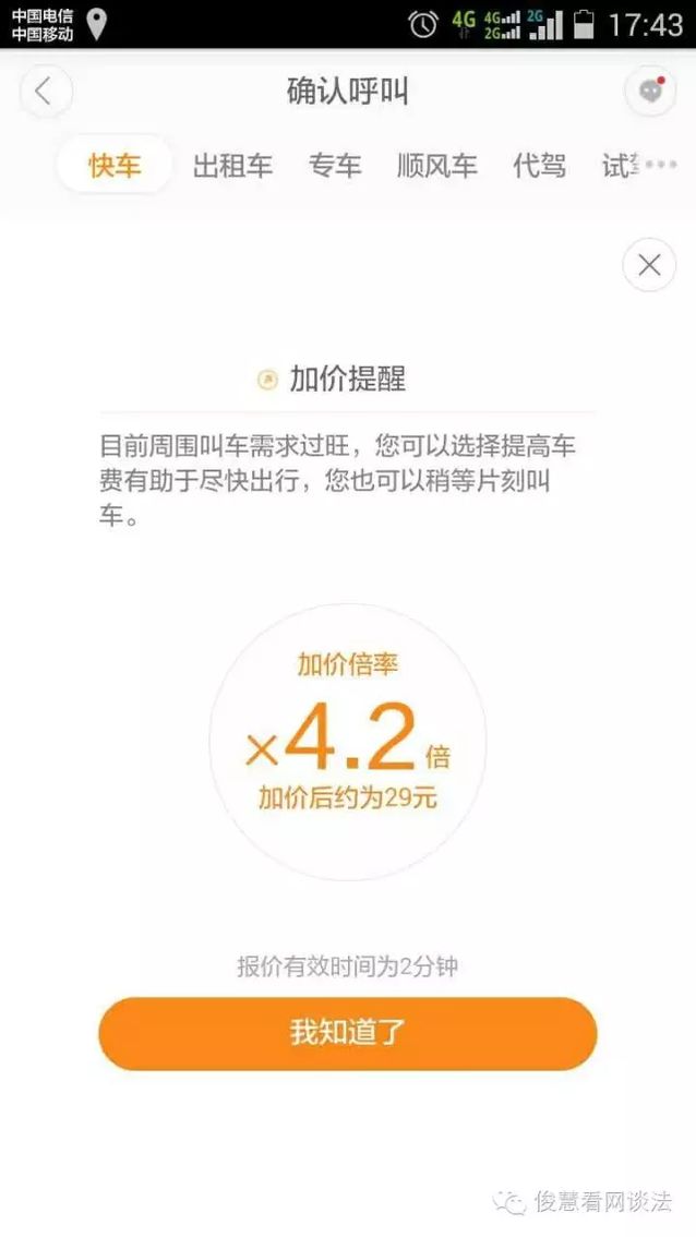 假如“4.2倍”的加價(jià)幅度還不算“趁水打劫”宰客的話,恐怕連“黑車”都不好意思叫自己“黑車”了。 那么,專車、快車“動(dòng)態(tài)調(diào)價(jià)機(jī)制”該何去何從?在保持平臺(tái)公道貿(mào)易回報(bào)的同時(shí),又如何避免平臺(tái)濫用上風(fēng)地位,隨意加價(jià)或漫天要價(jià)侵害乘客的正當(dāng)權(quán)益? 動(dòng)態(tài)調(diào)價(jià)機(jī)制有公道性,但不應(yīng)淪為“牟利”工具動(dòng)態(tài)調(diào)價(jià)機(jī)制,原本是各個(gè)專車平臺(tái)應(yīng)對(duì)日常出行高峰時(shí)段的“供需調(diào)控”工具,在乘客端,通過(guò)進(jìn)步用車本錢(qián)引導(dǎo)部門(mén)用戶選擇其他出行方式,而在司機(jī)端,通過(guò)進(jìn)步客單價(jià)刺激更多司機(jī)選擇接單或搶單。 假如平臺(tái)在動(dòng)態(tài)調(diào)價(jià)中沒(méi)有利益糾葛的話,那么,這種機(jī)制在日常出行時(shí)段使用還算有一定的公道性。 但是,因?yàn)楫?dāng)前包括滴滴、Uber在內(nèi)的各個(gè)專車平臺(tái),不僅大幅壓縮了面向乘客端及司機(jī)真?zhèn)雙向補(bǔ)貼,而且還面向司機(jī)按照每單金額20-26%比例收取服務(wù)費(fèi)。 那么,動(dòng)態(tài)調(diào)價(jià)機(jī)制也成為了各大專車平臺(tái)“牟利”工具或手段。 因此,假如沒(méi)有強(qiáng)有力的外在監(jiān)管機(jī)制,動(dòng)態(tài)調(diào)價(jià)機(jī)制使用頻率越高、時(shí)長(zhǎng)越長(zhǎng),對(duì)乘客的利益損害越大,而平臺(tái)及司機(jī)的收益越高。 簡(jiǎn)樸說(shuō),看似公道的動(dòng)態(tài)調(diào)價(jià)機(jī)制,實(shí)際上是建立在侵害乘客權(quán)益基礎(chǔ)上的變相牟利手段,即使在日常出行約車中,也應(yīng)該控制其使用的時(shí)段、時(shí)長(zhǎng)及頻次。 異常天色情況“約車加價(jià)”,是宰客更是乘人之危2015年10月10日,交通部會(huì)同多部分起草的《關(guān)于深化改革進(jìn)一步推進(jìn)出租汽車行業(yè)健康發(fā)展的指導(dǎo)意見(jiàn)(征求意見(jiàn)稿)》(以下簡(jiǎn)稱《指導(dǎo)意見(jiàn)》)和《網(wǎng)絡(luò)預(yù)約出租汽車經(jīng)營(yíng)服務(wù)治理暫行辦法(征求意見(jiàn)稿)》(以下簡(jiǎn)稱《暫行辦法》)面向社會(huì)征求意見(jiàn)。 按照此前《指導(dǎo)意見(jiàn)》和《暫行辦法》的軌制設(shè)計(jì),專車運(yùn)價(jià)是有可能實(shí)行“市場(chǎng)調(diào)節(jié)價(jià)“的。 相對(duì)于傳統(tǒng)出租車的“政府指導(dǎo)價(jià)”,專車本身在定價(jià)機(jī)制就處于上風(fēng)地位,其收益空間也比傳統(tǒng)出租車更高。 假如在實(shí)行“市場(chǎng)調(diào)節(jié)價(jià)”的條件下,還答應(yīng)專車平臺(tái)實(shí)施“動(dòng)態(tài)調(diào)價(jià)機(jī)制”的話,在資本牟利沖動(dòng)的驅(qū)使下,專車平臺(tái)濫用動(dòng)態(tài)調(diào)價(jià)機(jī)制擴(kuò)大收入來(lái)源的風(fēng)險(xiǎn)或概率將大幅激增。 在異常天色時(shí)段,引導(dǎo)更多道路行駛車輛降低空駛或進(jìn)步滿座率,原本恰是施展“互聯(lián)網(wǎng)+”技術(shù)上風(fēng)的絕佳良機(jī),但假如留存“動(dòng)態(tài)調(diào)價(jià)機(jī)制”甚至不限定加價(jià)幅度上限,那么,加價(jià)機(jī)制勢(shì)必會(huì)讓乘客成為平臺(tái)及司機(jī)“刀板上的魚(yú)肉,任其宰割”。 更重要的是,在類似大雨等異常天色時(shí)段,滴滴、Uber等專車平臺(tái)的“動(dòng)態(tài)加價(jià)”與“黑車”的漫天要價(jià),不僅沒(méi)有區(qū)別且更有“乘人之危”的嫌疑。 規(guī)范“動(dòng)態(tài)加價(jià)機(jī)制”,或取締或做上限治理假如技術(shù)提高的結(jié)果,是讓“黑車”更“黑”,讓”流氓“更”流氓“,那么,這種技術(shù)提高遠(yuǎn)比倒退更可怕。 因此,從監(jiān)管的角度來(lái)看,“動(dòng)態(tài)加價(jià)機(jī)制”的公道性遠(yuǎn)小于其危害性,從保障乘客利益考慮,假如未來(lái)的專車定價(jià)機(jī)制選定了“市場(chǎng)調(diào)節(jié)價(jià)”,答應(yīng)專車價(jià)格高于或大幅高于出租車價(jià)格,那么,監(jiān)管部分就應(yīng)該禁止或限制平臺(tái)使用“動(dòng)態(tài)加價(jià)機(jī)制”。 好比,在異常天色狀況下,嚴(yán)禁使用“動(dòng)態(tài)加價(jià)”或限制加價(jià)幅度,在出行高峰時(shí)段,嚴(yán)格控制加價(jià)時(shí)長(zhǎng)等,避免形成新的不公平交易前提。 在這次北京大雨天色中,首汽約車、易到用車等專車平臺(tái)并未面向乘客端“動(dòng)態(tài)加價(jià)”,這也表明定價(jià)較高的專車服務(wù)可能更輕易公道調(diào)控司機(jī)接單。 此外,從專車與平臺(tái)的關(guān)系來(lái)看,首汽約車的司機(jī)與平臺(tái)是直接的勞動(dòng)關(guān)系,在異常天色狀況下,平臺(tái)與司機(jī)的強(qiáng)治理關(guān)系,也有助于平臺(tái)引導(dǎo)司機(jī)適度延長(zhǎng)工作時(shí)間,響應(yīng)更多人的叫車需求等。 目前,已完成公家意見(jiàn)征求的《指導(dǎo)意見(jiàn)》和《暫行辦法》還未正式發(fā)布,專車服務(wù)的上風(fēng)毋庸多言,但是,對(duì)于專車服務(wù)可能存在的危害或風(fēng)險(xiǎn),則更需要關(guān)注并加以防范。 |