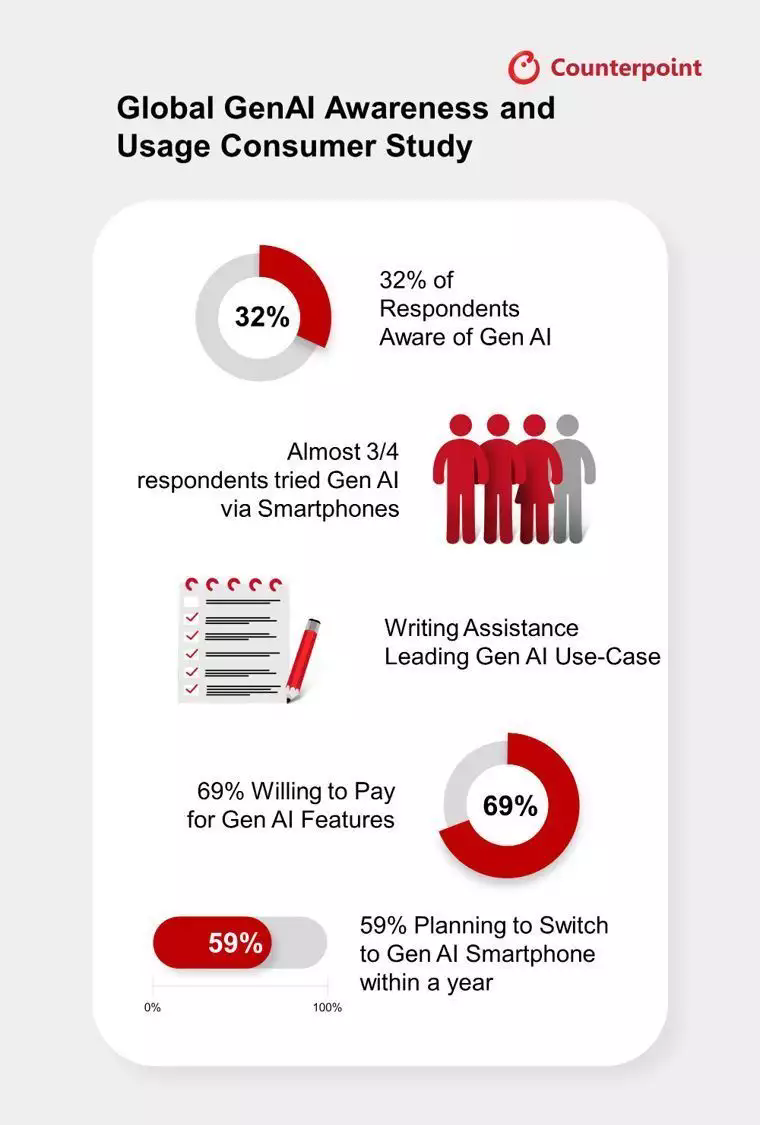 根據(jù) Counterpoint Research 的報告,生成式 AI 手機(jī)普及浪潮將至,以下是具體介紹: 消費(fèi)者認(rèn)知與意愿