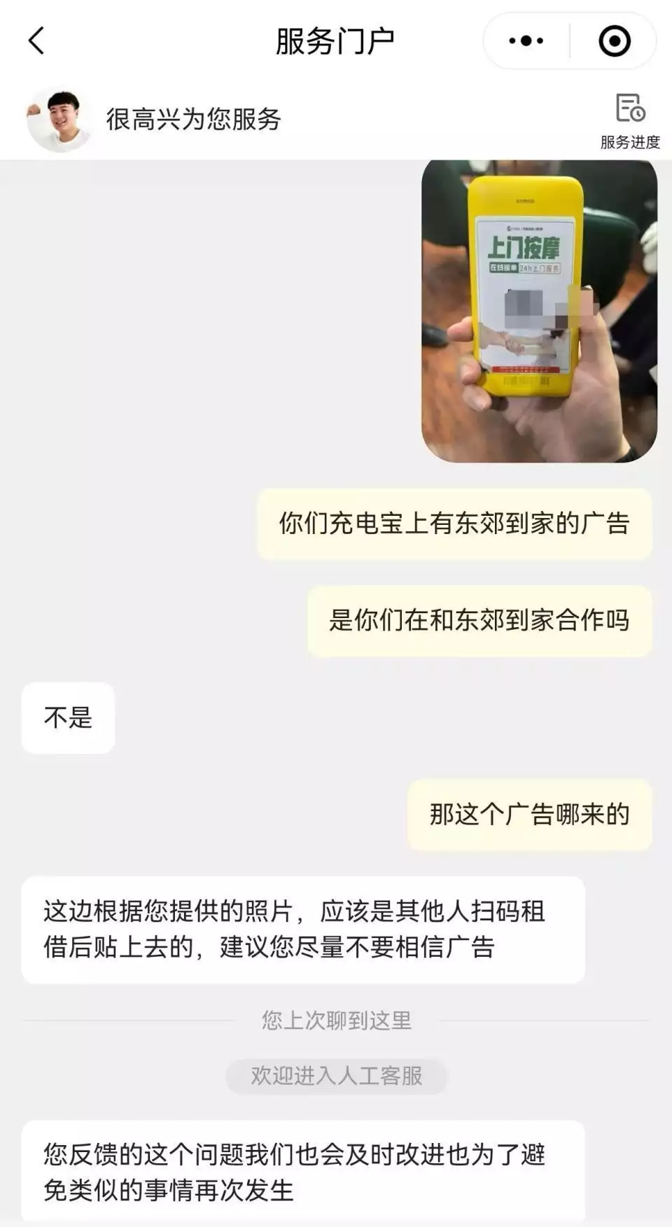 2024 年 12 月 22 日,武漢市民李曼在楚河漢街某餐飲店租用美團(tuán)共享充電寶時,發(fā)現(xiàn)充電寶上粘貼有 “東郊到家上門按摩” 的廣告. 以下是關(guān)于該事件的詳細(xì)介紹: