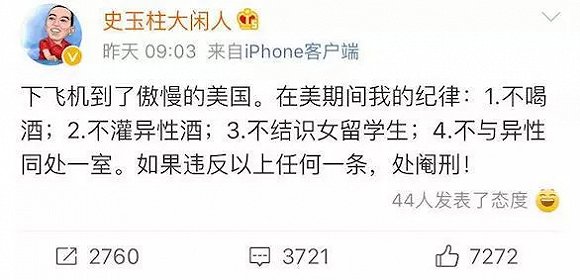 昨日史玉柱發(fā)了一條微博,瞬間刷屏朋友圈,如下: