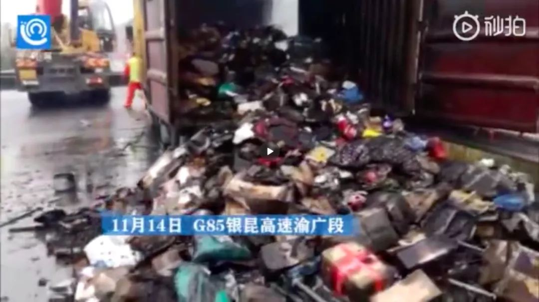 雙11慘劇又發(fā)生了 一輛從重慶開(kāi)往廣安的快遞車自燃起火 還好,我的快遞都到了