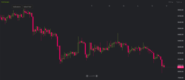 Bitstamp數(shù)據(jù)顯現(xiàn),比特幣最近24小時跌落逾300美元,跌幅大約3%,一度跌破8000美元報(bào)7980美元,創(chuàng)4月18日以來新低。