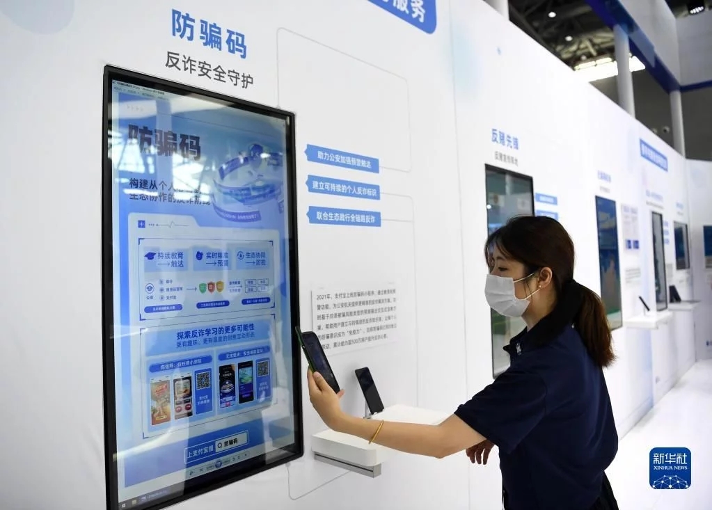 9月4日,一家參展企業(yè)代表在演示使用防騙碼。 當(dāng)日,2022年國家網(wǎng)絡(luò)安全宣傳周網(wǎng)絡(luò)安全飽覽會在安徽省合肥市舉辦。