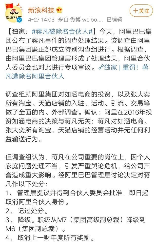 有媒體報(bào)道,蔣凡已不再擔(dān)任浙江淘寶網(wǎng)絡(luò)有限公司、浙江天貓網(wǎng)絡(luò)有限公司法定代表人、董事長(zhǎng)兼總經(jīng)理,不再擔(dān)任阿里巴巴迅犀(杭州)數(shù)字科技有限公司的法定代表人及董事長(zhǎng)。