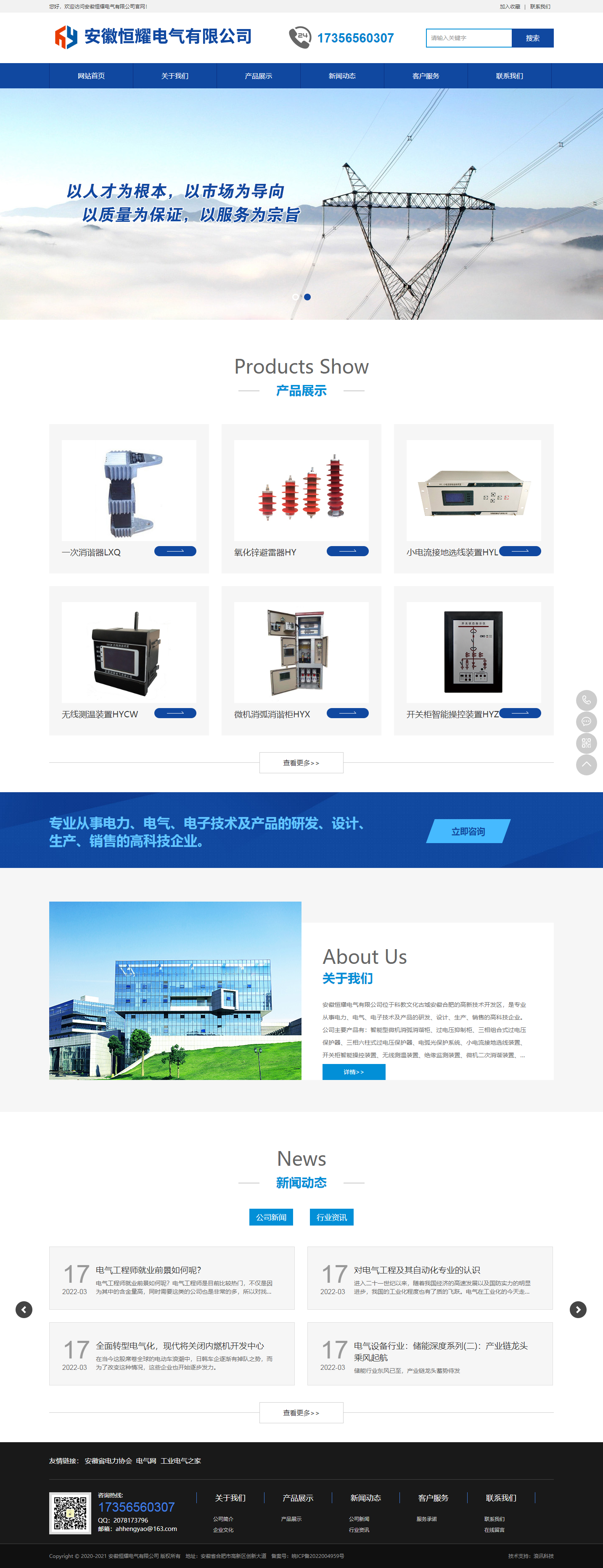 安徽恒耀電氣有限公司位于科教文化古城安徽合肥的高新技術(shù)開發(fā)區(qū),是專業(yè)從事電力、電氣、電子技術(shù)及產(chǎn)品的研發(fā)、設(shè)計、生產(chǎn)、銷售的高科技企業(yè)。